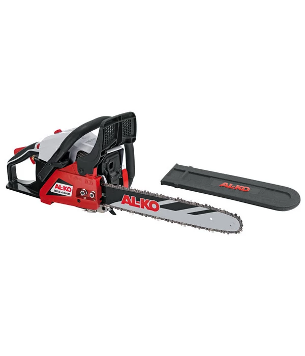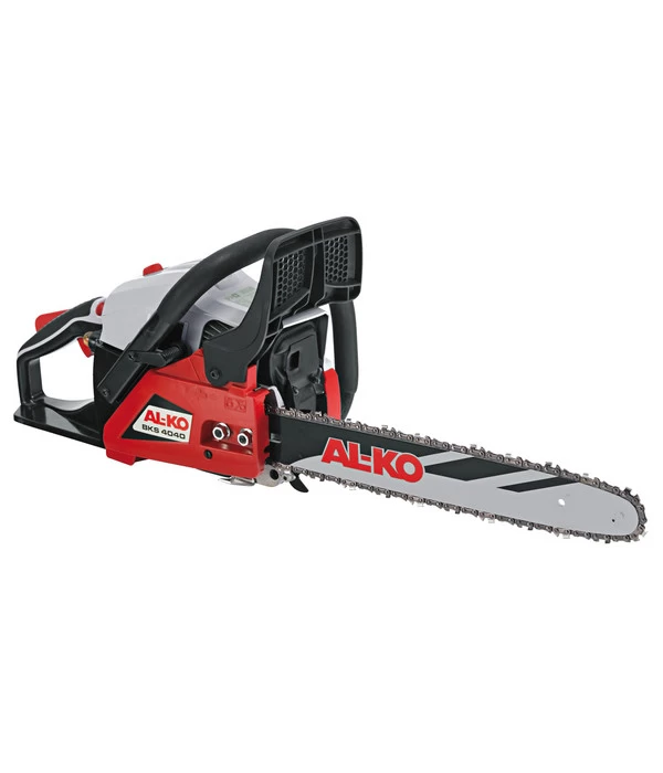 Leicht, handlich und trotzdem leistungsstark – das sind die wichtigsten Attribute der AL-KO Benzinkettensäge BKS 4040. Diese Kettensäge bringt nur 5,3 kg auf die Waage und zeigt mit einer Motorleistung von 1,5 kW eine starke Schnittleistung. Das hochwertige Original Oregon Schwert hat eine Länge von 40 cm, eine automatische Kettenschmierung und überzeugt mit einer enorm langen Lebensdauer. Für sicheren Halt bei allen Sägearbeiten sorgt die Baumanschlagkralle. Zum leichten Start ist die AL-KO Benzinkettensäge BKS 4040 mit einer Easy Start Funktion ausgestattet. Die effektive Kraftübertragung durch den leichtlaufenden Umlenkstern reduziert den Verschleiß an der Schwertspitze und verringert die Rückschlagneigung der AL-KO Benzinkettensäge BKS 4040. Für den Fall, dass die Säge bei einem Rückschlag zurückprallt, wird innerhalb von 0,12 Sekunden die automatische Kettenbremse ausgelöst.
