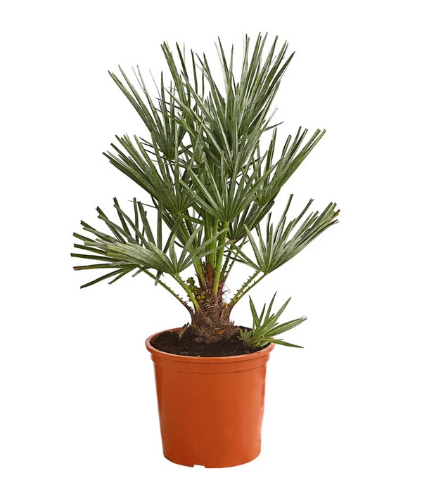 Die Blaue Zwergpalme ist zwar zur Auspflanzung im Garten geeignet, hierzu sollte sie aber bereits einige Jahre an einem passenden Ort eingewachsen sein. Vor starken Frösten müssen Sie die Palme gut schützen, denn ihr Temperaturminimum liegt bei -10° C. Wir empfehlen die Palme in jungen Jahren an einem hellen, kühlen Ort bei Temperaturen um die 8° C zu überwintern. So kann die Blaue Zwergpalme von März bis November im Garten oder auf Balkon und Terrasse stehen und übersteht den Winter sicher im Haus oder im ungeheizten Wintergarten. Beachten Sie aber, dass das Substrat der Pflanze langsamer abtrocknet und die Palme über den Winter weniger Wasser benötigt.