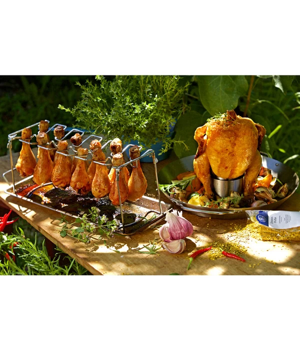 Sie lieben es zu grillen und wollen einmal etwas Neues probieren? Mit dem Hähnchengrillhalter von Dehner erweitern Sie Ihr Sortiment von Würstchen und Steaks um einen weiteren Leckerbissen! Die Hähnchen vom Grill sind ein absoluter Genuss und werden besonders saftig und aromatisch. Laden Sie all Ihre Freunde zu einer Sommerfeier ein und freuen Sie sich über die begeisterten Blicke ihrer Gäste, wenn Sie mit dem praktischen Halter das perfekte Grillhähnchen servieren!