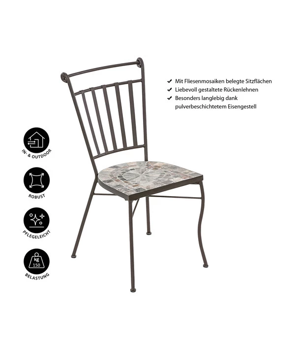Dass Terrassenmöbel wie der Dehner Mosaikstuhl ‚Grazia‘ eine mediterrane oder auch orientalische Ausstrahlung haben, liegt an der jahrhundertealten Tradition dieser Handwerkskunst. Sie ist ganz typisch für den Mittelmeerraum und Nordafrika. Und nachdem die damit verzierten Möbel und Accessoires nicht nur äußerst attraktiv, sondern auch absolut stabil und UV-beständig sind, dienen Sie ihren Besitzern oft über viele Jahre oder gar Generationen hinweg.