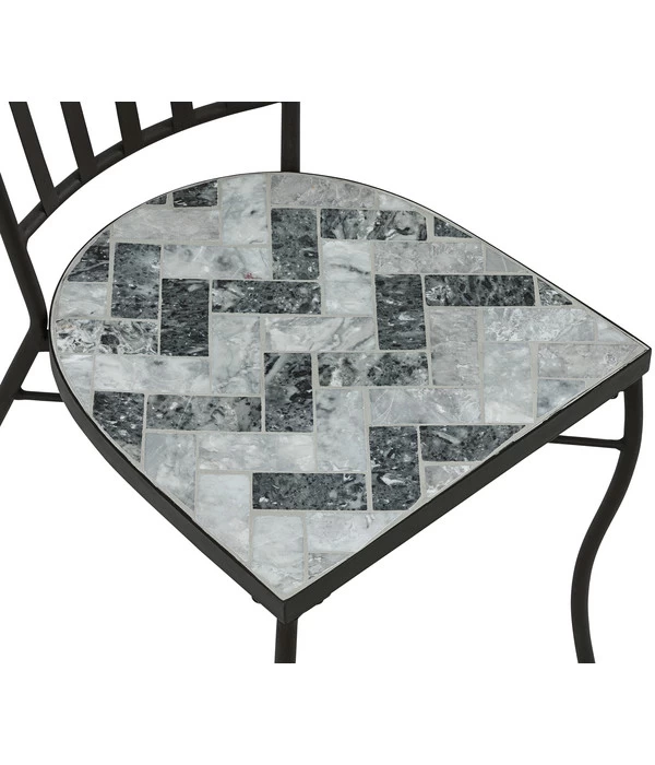 Wenn es um Terrassenstühle geht, sind Ihnen zwei Dinge wichtig: Der Stil und die Outdoor-Qualität. Denn nur so können Sie Ihre Freizeit auf der Terrasse oder im Garten in vollen Zügen genießen und sich an der Optik Ihrer Stühle erfreuen. Zielsicher sind Sie deshalb auch hier beim Dehner Mosaikstuhl ‚Letizia‘ gelandet. Denn dieser kunstvolle Stuhl erfüllt Ihre Anforderungen und wartet mit sogar mit einer Besonderheit auf, der Sie nicht werden widerstehen können: Ein Fliesenmosaik. Seine Sitzfläche zieren dekorativ angeordnete Fliesenquadrate in edlen Grau- und Weißtönen, die ein attraktives grafisches Muster bilden. Getragen wird die elegante Sitzfläche von einem ebenso kunstfertig geformten Eisengestell. Werfen Sie nur einen Blick auf die liebevoll gestaltete Rückenlehne oder die sanft geschwungenen Beine. Fühlen Sie sich dabei auch an Italienurlaub erinnert, wo vor so manchem Haus und in vielen der Cafés ganz ähnliche Stühle stehen? Holen Sie sich – am besten nicht nur einen – Dehner Mosaikstuhl ‚Letizia‘ auf Ihre Terrasse oder in Ihren Garten und erfreuen Sie sich an seiner Ausstrahlung!