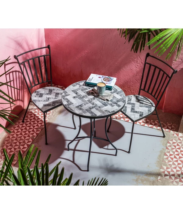 Fliesenmosaik und Eisengestell wetterfest, pflegeleicht
