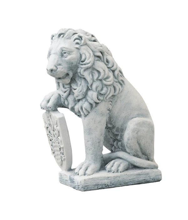 Als Symbol des Mutes, der Kraft und des Stolzes war der Löwe einst das beliebteste Wappentier, später fand er als stilvolle Steinskulptur Einzug vor allem in barocke Parkanlagen. Heute ist es vor allem sein edles Erscheinungsbild, das uns fasziniert. Majestätisch thront der fantasieco Steinlöwe, den Blick in die Ferne gerichtet, das Wappenschild mit einer Pranke beschützt! Mit seinen 66 cm Höhe braucht der fantasieco Steinlöwe keine ausgedehnte Parkanlage, um als krönendes Highlight im Garten die Blicke auf sich zu ziehen. An der Terrasse, in einer lauschigen Ecke, auch im Eingangsbereich macht sich der fantasieco Steinlöwe prächtig und heißt Ihre Gäste auf stilvolle Weise willkommen. Besonders dekorativ wirkt der nach rechts geneigte fantasieco Steinlöwe aber zusammen mit einem zweiten, nach links geneigten Löwen.