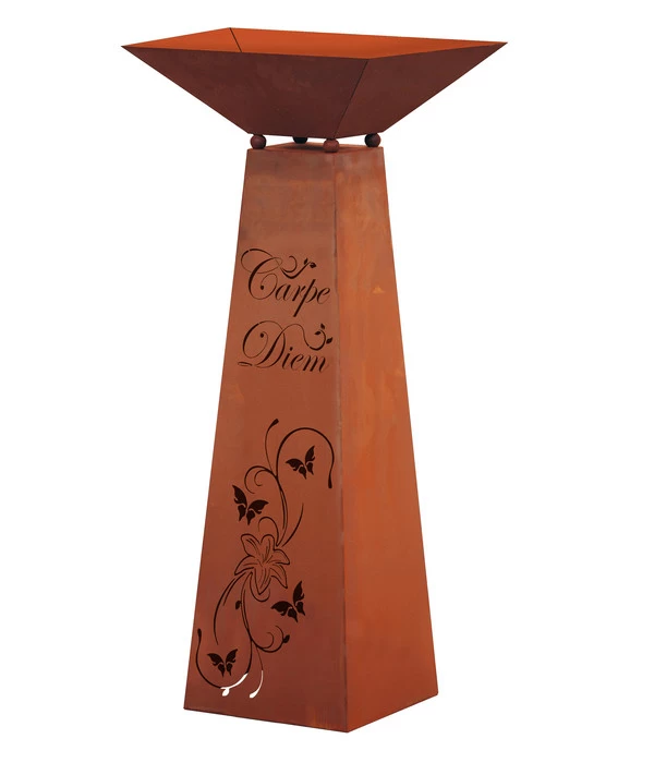 Ferrum liefert ihnen mit der Rost-Säule einen Neuzugang für Ihre Oase, der ausdrucksstarke Verzierungen und eine essenzielle Botschaft bietet: Jeder Betrachter wird daran erinnert, wie wichtig es ist, den Tag zu nutzen. Natürlich lässt sich die Schale auf der Säule variantenreich mit Ihren Lieblingsblumen bepflanzen oder anderweitig ausstatten, damit Sie erst recht für einen denkwürdigen Eyecatcher im Garten sorgen. Entscheiden Sie sich jetzt für die Rost-Säule Trapez Carpe Diem aus dem Hause Ferrum, stellen Sie diese beispielsweise neben die Haustür oder ins Blumenbeet und genießen Sie hervorragende Qualität aus Deutschland!
