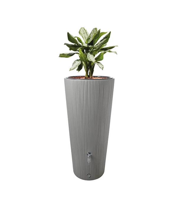 Diese neue Version einer Regentonne ist ideal für Ihre Terrasse oder einen anderen Standort nah am Haus. Als Wassersammler besitzt der GARANTIA Regenspeicher Linus 2in1 ein Fassungsvermögen von 220 Litern. Das konische Gefäß von 120 Zentimeter Höhe und einem Durchmesser von 58 Zentimetern ist mit seinem außergewöhnlichen, gradlinigen Design und der einzigartigen Oberflächenstruktur zugleich ein edles und sehr elegantes Pflanzgefäß. Mit seinen kompakten Abmessungen lässt er sich gut dicht am Fallrohr Ihrer Regenrinne anbringen. So können Sie jederzeit frisches weiches Gießwasser aus dem mitgelieferten Auslaufhahn des GARANTIA Regenspeichers Linus 2in1 zapfen. Zudem vermeiden Sie es, eine unschöne Regentonne direkt am Haus oder auf der Terrasse stehen zu haben, fangen aber das kostbare und für die Pflanzen so wichtige Regenwasser dennoch nutzbringend auf. Im Lieferumfang enthalten sind außerdem zwei Gewindeanschlüsse von 20 Millimetern (3/4) für den Hahn sowie zum Entleeren des Restwassers vor dem Winter ein Universal-Schlauchset (Zubehör) und eine Zulaufdichtung.