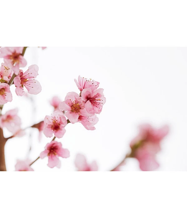 Setzen Sie deshalb dieses Pfirsichbäumchen an einen warmen, vollsonnigen Standort, der idealerweise vor kalten Ostwinden geschützt ist. Am wohlsten fühlt sich ein Gelbfleischiger Pfirsich zum Beispiel an einer warmen Südwand. Der Boden sollte nährstoffreich, lehmig und humos sein. Versorgen Sie den Pfirsichbaum mit ausreichend Wasser, vermeiden Sie aber Staunässe. Wichtig für einen kräftigen Wuchs und guten Ertrag ist der regelmäßige Schnitt. Da Pfirsiche am einjährigen Holz fruchten, sollten Sie die abgeernteten Triebe gleich nach der Ernte kräftig zurückschneiden. Das regt die Bildung neuer Triebe an. Darüber hinaus empfehlen wir Ihnen, direkt vor oder nach der Blüte einen sogenannten Fruchtholzschnitt durchzuführen.