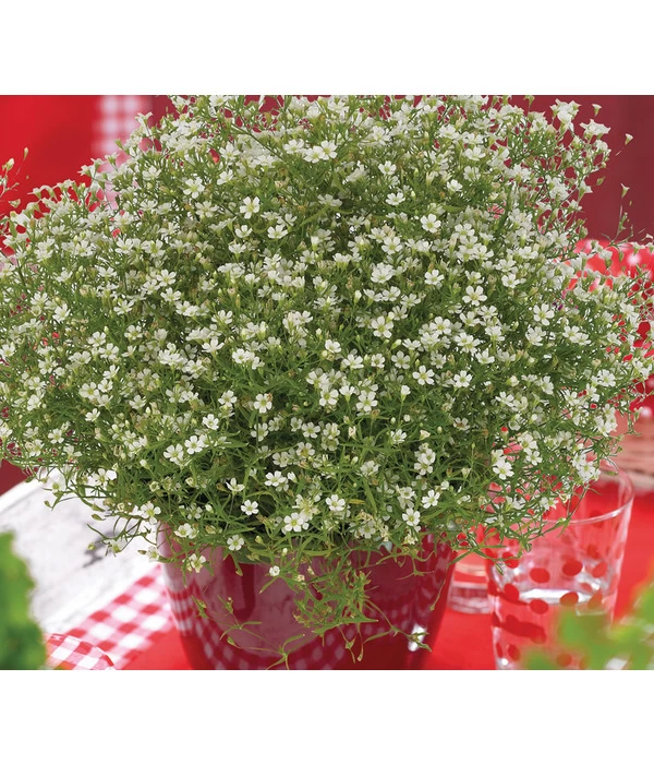 …ist das Gypsophila oftmals als Tischschmuck oder in Braut- oder Rosensträußen, denn die Blütentriebe sind äußerst gut zum Schnitt geeignet. Oder binden Sie einen Trockenstrauß zusammen mit Rosen oder Hortensien. Das wunderschöne Schleierkraut eignet sich natürlich ebenso hervorragend für Bauern- oder Naturgärten, in kombinierten Anpflanzungen in Rabatten oder im Kübel.