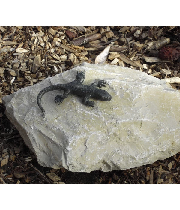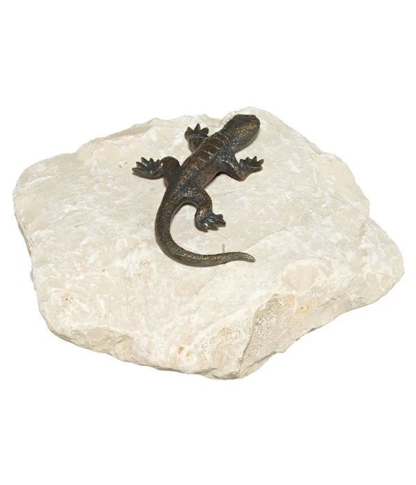 Da wuselt sie doch durch den Garten und hält plötzlich auf dem Stein inne. Oder nicht? Täuschend echt wirkt die Rottenecker Bronzefigur Eidechse auf Findling auch noch beim zweiten Blick. Hier macht sich die Maßarbeit in vielen Einzelschritten bemerkbar, die das Jahrtausende alte Handwerk der Bronzegießerei erfordert. Sie werden viel Freude an der Rottenecker Bronzefigur Eidechse auf Findling haben, denn man muss normalerweise lange in Galerien und auf Märkten nach so einem individuellen Objekt suchen. Bis ins letzte Detail der aufwendig hergestellten Patina können Sie immer wieder ein neues Spiel aus Licht und Schatten auf Ihrer Rottenecker Bronzefigur Eidechse auf Findling beobachten, während Sie entspannte Stunden im Garten genießen.