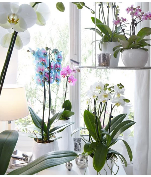 Sie gehören ohne Zweifel zu den beliebtesten Pflanzen auf unserer Fensterbank: die Phalaenopsis. Anmutig schweben die zahlreichen Blüten, wie Schmetterlinge über der Blattbasis der Pflanze. Dabei ist sie überaus blühfreudig und robust, da die Pflanzen selbst bei wenig Pflege über mehrere Monate hinweg blühen. Gerade deshalb eignen sie sich auch hervorragend für ungeübte Orchideenfreunde. Mit der Schmetterlingsorchidee ‚Blue Wonder‘ erleben Sie ein (blaues) Wunder der besonderen Art: Die Blüten dieser ursprünglich weißen Orchidee wurden durch ein spezielles Verfahren gefärbt: Himmelblau mit pinker Aderung. Eine einzigartige Besonderheit und ein echter Eyecatcher auf jeder Fensterbank! Erst die Nachblüten neuer Blütenrispen erstrahlen dann wieder in reinem Weiß.