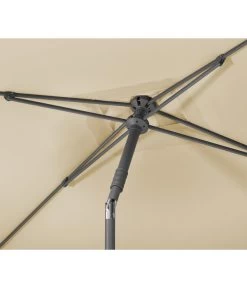 Das Gestell besteht aus anthrazitgrauem Stahl, der mit einer Pulverbeschichtung wetterfest gemacht wurde. Für die Qualität dieses Sonnenschirms sprechen auch die Zahlen: Die Stärke der Streben beträgt 12 x 18 mm, der Stock hat einen Durchmesser von 38 mm. Da der Stock zweiteilig ist, können Sie ihn für den Winter auseinandernehmen und platzsparend lagern. Dank der Push-Up-Funktion lässt sich der Schirm ganz einfach öffnen und schließen. Zudem kann er bis zu 60 cm in der Höhe verstellt werden und mit Hilfe des Metall-Knickers abgeknickt werden. Auf diese Weise kann Sie der Schneider Sonnenschirm Sevilla, je nach Sonnenstand, bestens vor den UV-Strahlen schützen.