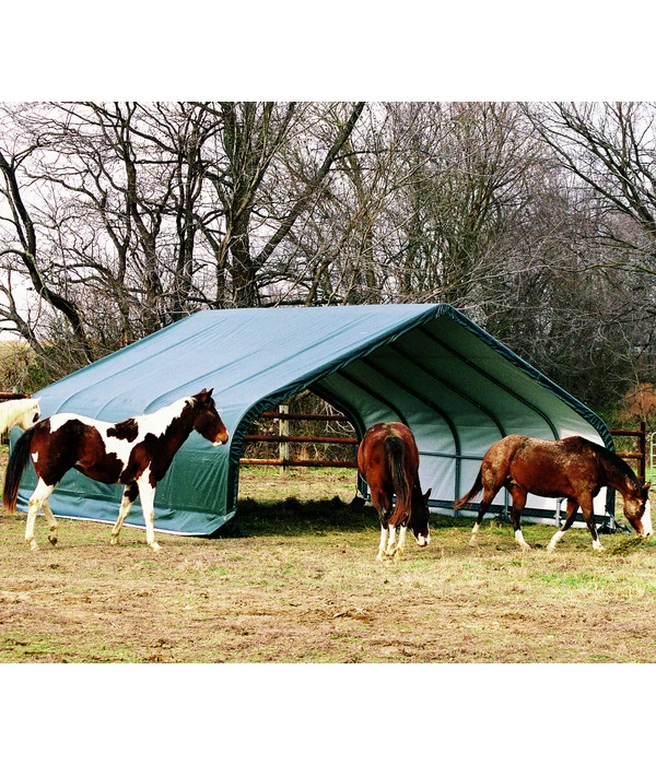 Der Clou an dem ShelterLogic Run-In-Shed ist seine Vielseitigkeit. Sie können das Zelt entweder saisonal einsetzen oder es das ganze Jahr über im Freien lassen. In jedem Fall ist es schnell auf- und abgebaut, falls es an einem anderen Ort benötigt wird. Zum Schutz für Ihre Tiere besitzen die Füße des Gestells Schutzkappen. Auf diese Weise können sich Pferde, Ziegen oder Esel hier keine Verletzungen zuziehen. Wenn Sie sich einen flexiblen und robusten Weide-Unterstand wünschen, dann legen Sie am besten jetzt das Shelter Logic Weidezelt in Ihren Warenkorb.