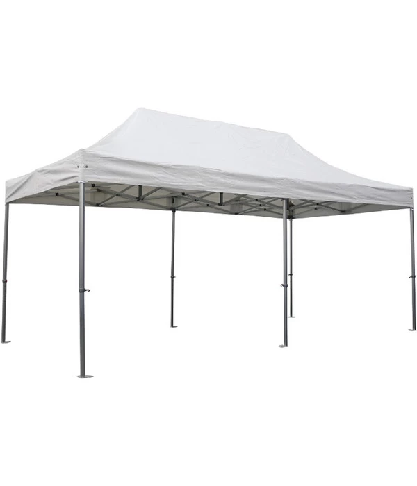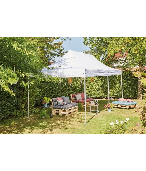 Der Siena Garden Faltpavillon Pro hat ein stabiles Scherengestell aus pulverbeschichtetem Aluminium mit Pfosten aus einen 50 mm Hexagonal-Profil, was für einen überaus stabilen, sicheren Stand sorgt. Deshalb können Sie das Gartenzelt nach der Feier ruhig noch ein Weilchen stehen lassen und ohne Gäste die wunderbare Atmosphäre im Inneren genießen. Das Dach besteht aus hochwertigem Polyestermaterial mit einer Stärke von 300 g/m² und ist PVC-beschichtet, sodass es Ihnen und Ihren Gästen einen Lichtschutzfaktor von 50+ bietet. Besonderes Extra sind die Seitenteile mit den großen Panoramafenstern, durch die viel Licht ins Innere fallen kann. Der Eingang ist beim Siena Garden Faltpavillon Pro 3-stufig höhenverstellbar und bei Bedarf mit einem Reißverschluss fest verschließbar.