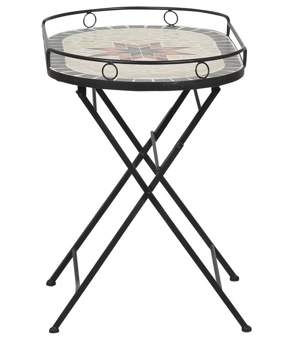 Der Serviertisch Stella ist nicht nur ein Augenschmeichler, er überzeugt auch mit seiner witterungsbeständigen Konstruktion, denn Dank der Pulverbeschichtung ist das Metall zuverlässig vor Rostentstehung geschützt. Dadurch dürfen Sie sich lange über das hübsche Design freuen. Außerdem bietet das schwarze Stahlgestell einen ganz tollen Kontrast zur feinen Mosaikfläche. Erfinden Sie sich immer wieder neu und gestalten Sie das Gartentischchen ganz nach Lust und Laune oder gekonnt auf die aktuelle Saison abgestimmt. Worauf warten Sie noch? Sichern Sie sich Ihr neues Lieblingsstück und legen Sie direkt los!