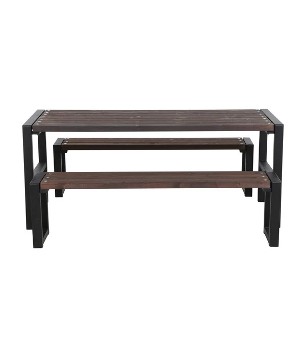 Sie werden auch die optische Ausstrahlung lieben, die Ihre Sitzgarnitur Tirol auf der Terrasse entwickelt. Dabei bringt das geradlinige Design Klarheit und Ruhe ins Spiel, während die urig-natürliche Optik des dunkel gefärbten Kiefernholzes Gemütlichkeit und Wärme vermittelt. In Summe eine Sitzgruppe, die die unterschiedlichsten Einrichtungsstile harmonisch ergänzt. Und der Clou: Wenn Sie abends hineingehen lassen sich die beiden Bänke nicht nur ganz an den Tisch heranrücken, sondern sie lassen sich passgenau darunter schieben. Perfekt, oder!