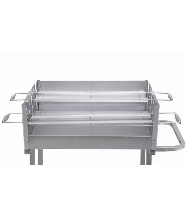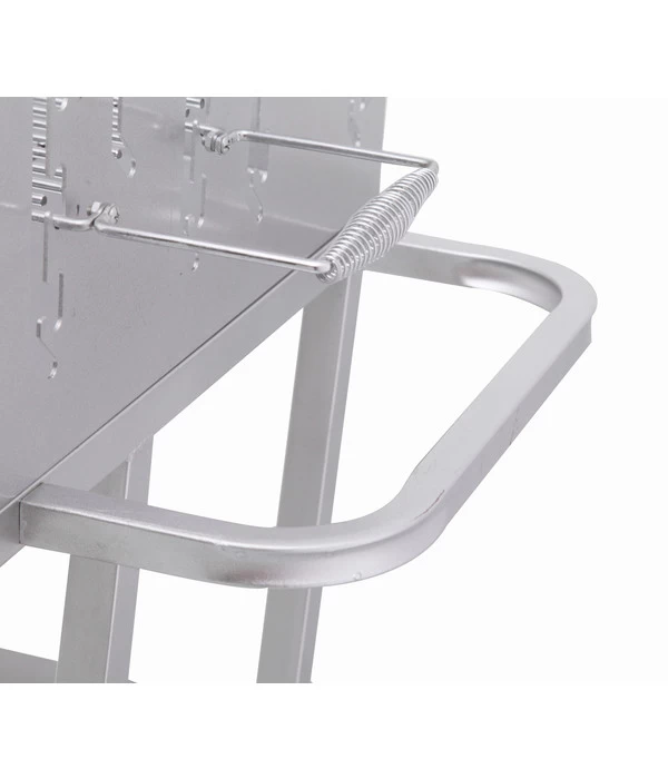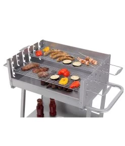 Die große Grillfläche mit zwei verchromten Grillrosten ermöglicht Ihnen die Zubereitung des Grillguts für mehrere Personen. Da die Grillroste höhenverstellbar sind, ist es ein Kinderspiel, mehrere Lebensmittel unterschiedlicher Garpunkte gleichzeitig zu grillen. Dabei können Sie die Luftzufuhr bequem und optimal mit dem Windschutz steuern. Ihr neuer Grillwagen steht sicher an Ihrer Seite. Die einzelnen Teile sind lackiert und verchromt, so ist er auch im Freien bei Wind und Wetter vor Korrosion geschützt. Ihr Pasadena von tepro ist einfach zu montieren und im Nu erfreuen Sie Familie und Freunde mit entspannten Grillabenden.