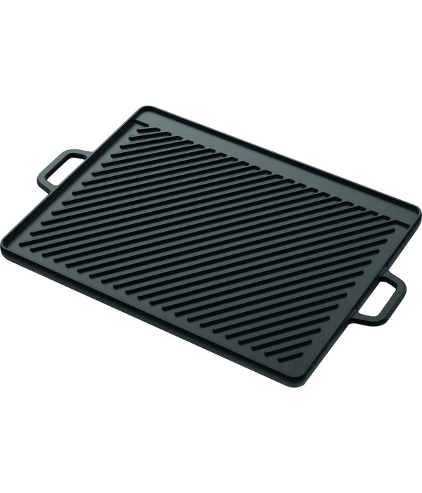 Sie werden die tepro Universal Guss-Wendeplatte XL lieben, da sie die perfekte Ergänzung Ihres Repertoires für die Zubereitung von Grillgut ist. So ermöglicht beispielsweise die glatte Seite der Wendeplatte eine schonende Zubereitung von Gemüse, Sushi und anderen empfindlichen Snacks. Die andere Seite ist geriffelt, was Steaks und Spießen das klassische und charakteristische Branding verleiht. Damit auch wirklich jedes einzelne Gericht gelingt, ist die Oberfläche der Platte emailliert, was ein Anhaften der Lebensmittel weitestgehend verhindert.