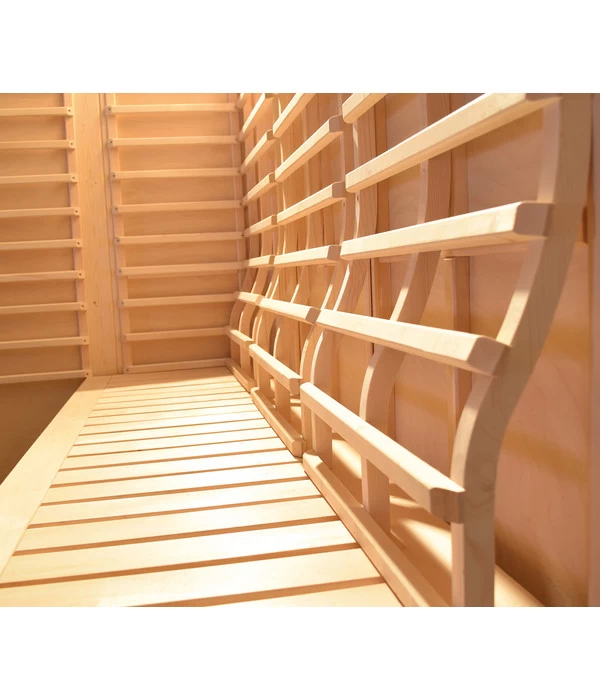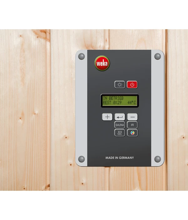 Das besondere an der Weka Infrarotkabine Osby ist die Art der Heizung. Bei diesem Model sind nämlich hochwertige Flächenstrahler in die Wände, die Decke und in den Boden eingelassen. Die Folge: Der Innenraum wird wunderbar gleichmäßig gewärmt, auch an den Füßen und auch, wenn zwei Personen die Kabine nutzen. Zudem liefern Flächenstrahler eine milde Wärme, aber keine feuchte Hitze. Das heißt: Die Strahler wärmen den Körper und nicht die Luft, weshalb auch das Atmen leichtfällt. Deshalb ist die Weka Infrarotkabine Osby ideal für alle, die schnell unter Atembeschwerden leiden. Außerdem können Sie zwischen 30 und 50°C die für Sie angenehmste Temperatur wählen.