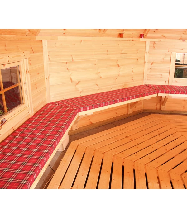 Sie überlegen, sich ein einzigartiges, sechseckiges Gartenhäuschen mit einem Grill in der Mitte zuzulegen? Dann empfehlen wir Ihnen eine Grillkota der Marke Wolff Finnhaus. Oder vielleicht sind Sie bereits im Besitz dieses wunderschönen Gartenrefugiums aus Massivholz und haben schon stundenlange heitere Grillfeste in Ihrer Kota gefeiert? Für die ultimative Gemütlichkeit während solcher außergewöhnlichen Grillabende bietet ein Satz Sitzauflagen Grillkota 9 de luxe. Durch den hochwertigen Schaumstoff, verpackt in strapazierfähigen Karostoff, sitzen Sie, Ihre Familie und Gäste bequem und warm. So steht einem Grillfest auch während der kalten Jahreszeit wirklich nichts mehr im Wege. Zögern Sie daher nicht lange und bestellen Sie die Sitzauflagen zu Ihrer Grillkota Jesse, Gard oder Kauri gleich mit dazu.